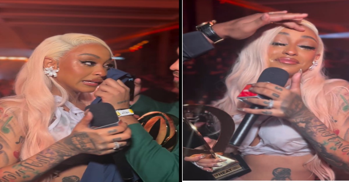 El Momento de la artista dominicana quedo captado recibiendo el galardón entre llantos de emoción en el evento.